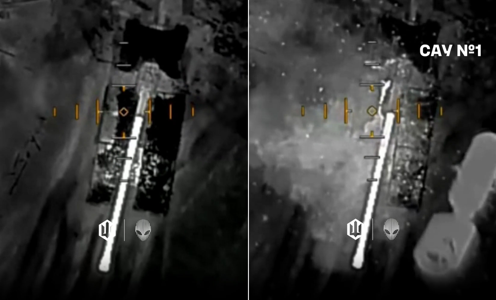 Soldiers from the Asgard battalion, part of the 412th Nemesis Regiment of SBS, later struck the fourth Koksan using a first-person-view drone. Reconnaissance drones recorded the impact from a distance.