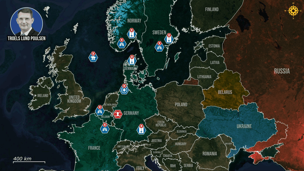 Drones also appeared across the border above Düren in Germany. Even airports in Copenhagen and Oslo were affected, along with North Sea oilfields and Danish and Swedish military sites. As Denmark’s defense minister said bluntly, this is what he would define as a hybrid attack.
