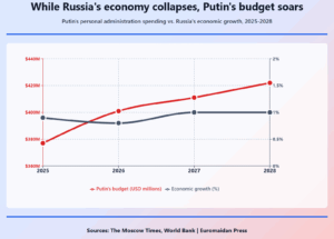 ![]() | Putin's daily budget hits $1.1M as half a million Russian businesses face new taxes. Kremlin staff get $18M in raises while World Bank predicts Soviet-style economic stagnation. |