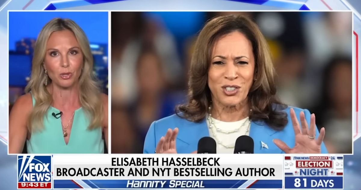 Elisabeth Hasselbeck questioned Vice President Kamala Harris binge eating a bag of Doritos as a response to former President Donald Trump winning the 2016 election.