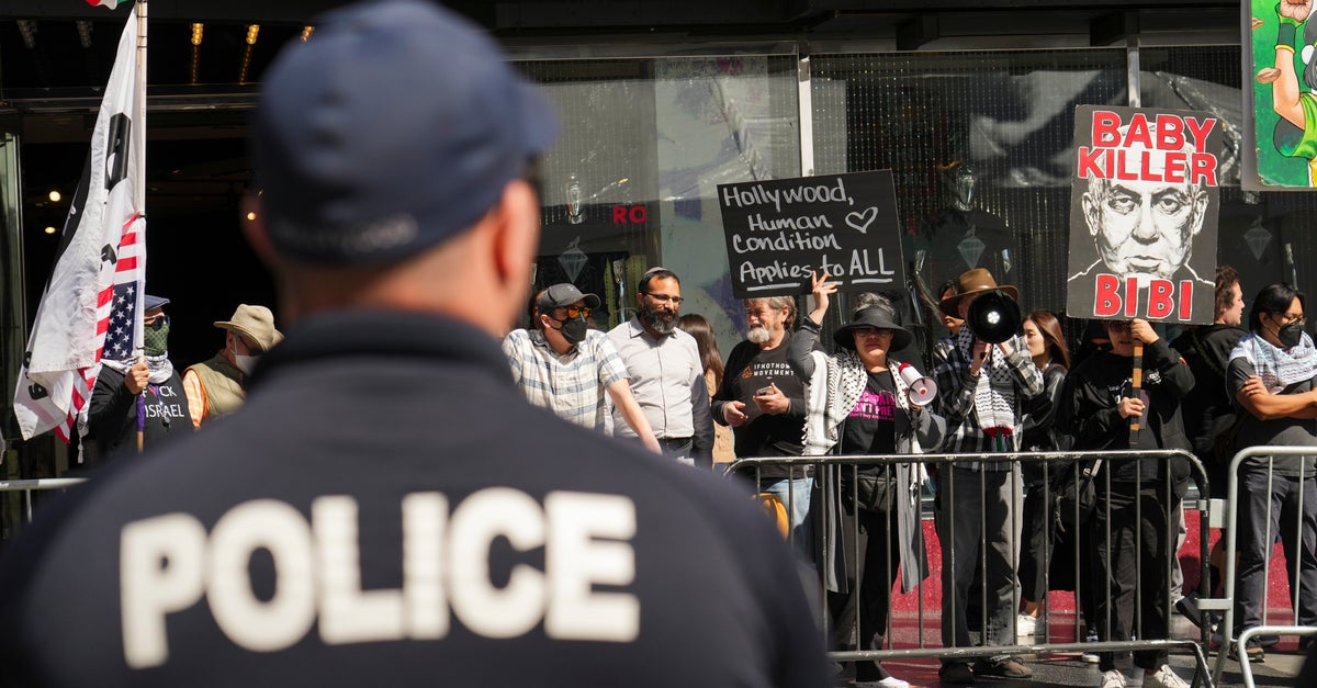 According to Variety, there were about four dozen people protesting in total, about two dozen pro-Palestine protesters and two dozen pro-Israel protesters.