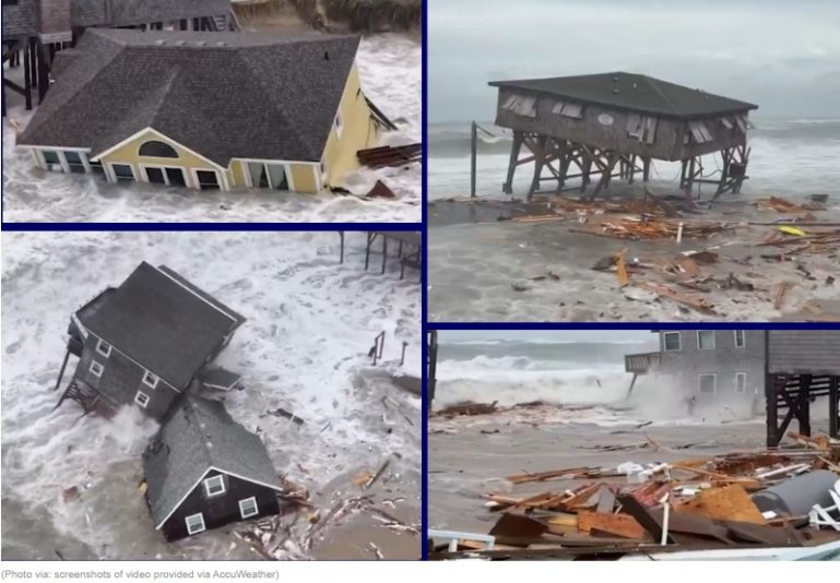 Seis casas de playa en Buxton, Carolina del Norte, se derrumbaron en el Océano Atlántico como consecuencia de los huracanes Humberto e Imelda. Cinco de estas casas se derrumbaron en un lapso de 45 minutos por la tarde, y una sexta se derrumbó más tarde ese mismo día.