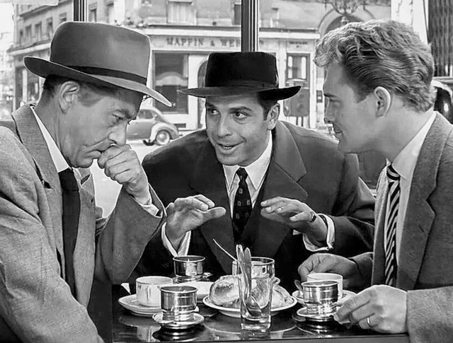 Servais plays Tony as ascetic and unsentimental, reserving what little affection he's willing to show for Jo's son Tonio, his godson. Jo is the outfit's muscle, stolid and capable and loyal to Tony, while Mario and César are almost comic relief; Mario is all appetite, happily in thrall to his sexpot wife Ida (Claude Sylvain), while César is a dandy and, as the kids say today, a hopeless simp, chasing after young women like Viviane (Magali Noël), the singer at the L'Âge d'Or.