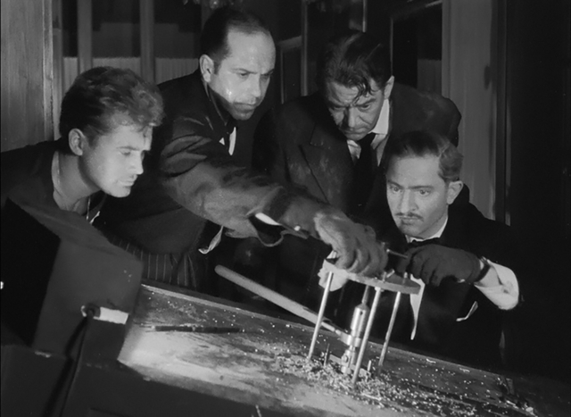 For some reason his reunion with Mado makes Tony reconsider the jewelry story robbery, but he tells Jo and Mario that it isn't ambitious enough: he wants to rob the safe, a far more complicated operation for which they'll need a safecracker, and Mario recommends his friend César "le Milanais" (Dassin). They'll need several hours, at night, and access to the owner's apartment above the store, and the caper begins.