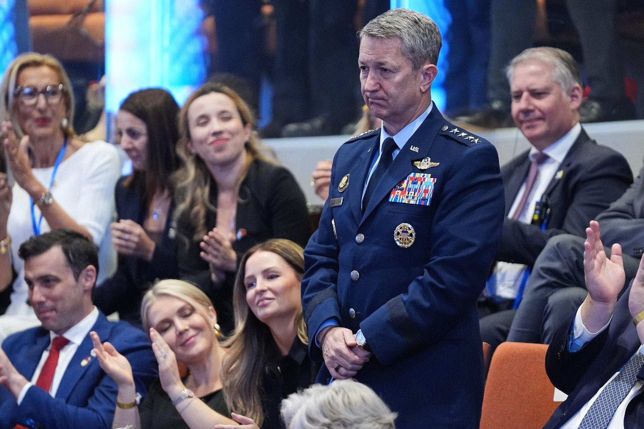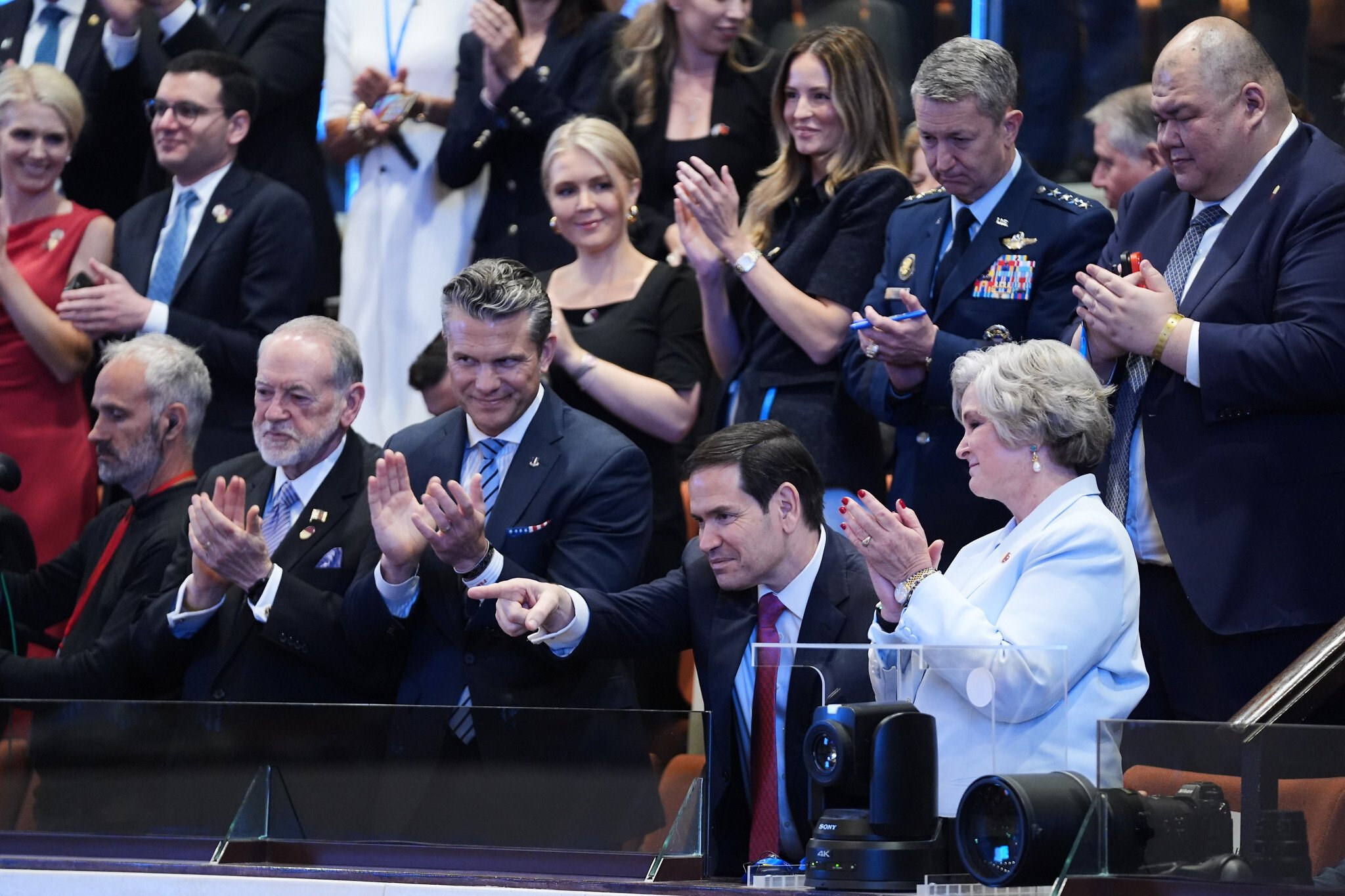 A new coalition of proud and responsible nations is emerging. And because of us, the enemies of all civilization are in retreat. Thanks to the bravery and incredible skill of the Israeli Defense Forces and Operation Rising Lion. You know, [points to IDF Chief Eyal Zamir] the guy’s central casting. Let’s put him in a movie. Look at him. Great job. And my people loved working with you. Loved it. They worked so well together.