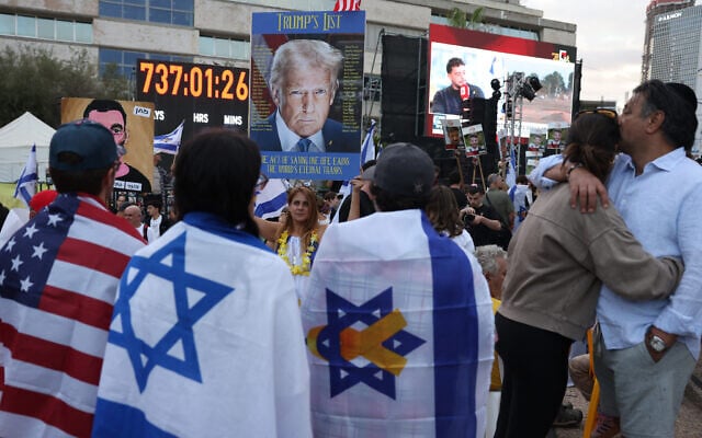 Some waved Israeli and American flags, some held signs thanking US President Donald Trump for his efforts to secure the hostages’ release, and others stood silently, taking in the moment.
