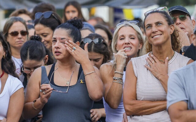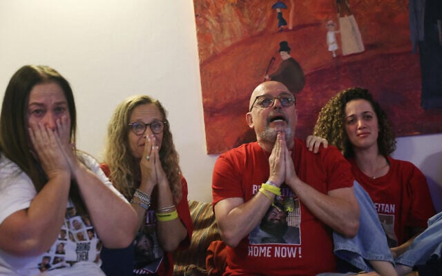 In living rooms around the country, the families of the captives tearfully watched the scenes and embraced each other in relief and joy as their loved ones appeared on screen and were returned to Israel.