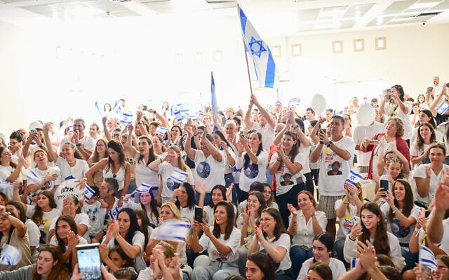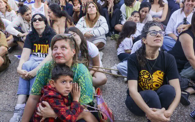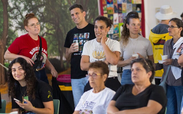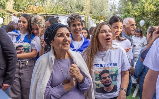 Family and friends of Israeli hostage Bar Kuperstein await his release from Hamas captivity in Holon, October 13, 2025 (Yossi Aloni/Flash90)
