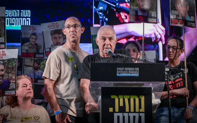 Former hostage Gadi Mozes, who returned from Hamas captivity in January as part of the last Gaza ceasefire, told the protesters that they “do not have the privilege to rest — the protests are important.”