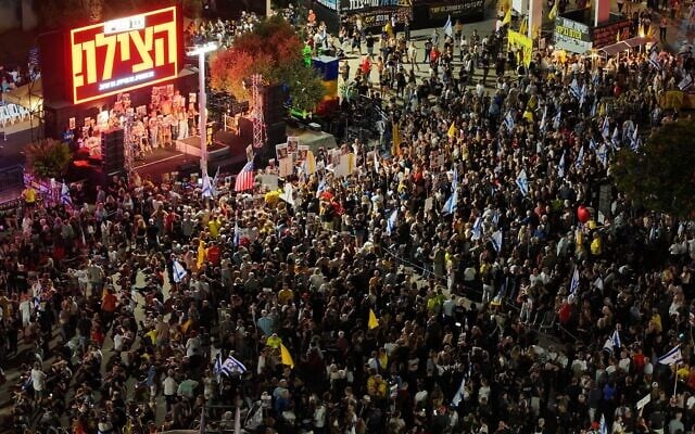 In Tel Aviv’s Hostages Square, tens of thousands gathered to listen to speeches from former hostages.