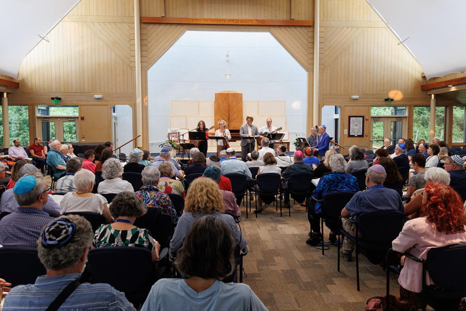 The Conservative congregation hung a “bring them home now” sign out front on behalf of the hostages. Rabbi Jesse Olitzky added the “Acheinu” prayer for redeeming captives to the weekly Shabbat service, and each week read the biography of a hostage. As the war raged on, the congregation sang songs of peace.