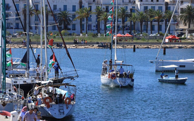 A flotilla bound for Gaza carrying symbolic aid and pro-Palestinian, anti-Israel activists set sail Monday from Tunisia after repeated delays, aiming to break Israel’s blockade. They will be joined by two ships that set sail Sunday evening from the Greek island of Syros to join the effort.