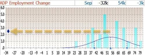 Ahead of today's ADP print we said that traders will be especially focused on the otherwise unreliable number, since the government shutdown which hit at midnight means that this Friday's payrolls report will likely not happen. Well, if that is the case, the market - and Fed - may well be expecting a jumbo 50bps rate cut again in 3 weeks, because moments ago ADP reported that in September, the US private sector shed 32,000 jobs, the worst print since March 2023...