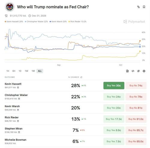 After weeks of intensive interviews - some running two hours, Treasury Secretary Scott Bessent has narrowed the field for the next Federal Reserve chair down to five candidates from an initial 11, according to CNBC, citing senior Treasury officials. The group includes two current Fed policymakers, Vice Chair for Supervision Michelle Bowman and Governor Christopher Waller; former Fed Governor Kevin Warsh; National Economic Council Director Kevin Hassett; and Rick Rieder, BlackRock’s chief investment officer for fixed income.