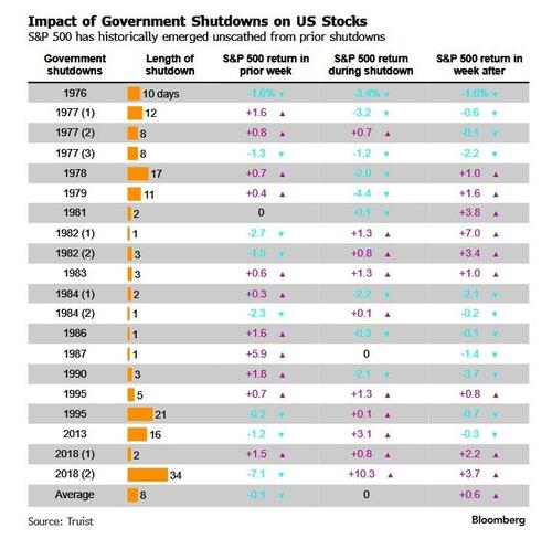 Interestingly, we looked in yesterday’s chart of the day at this (link here), and found that markets historically have taken shutdowns in their stride. In fact, the S&P 500 rose in the last 6 shutdowns, and 10yr Treasury yields came down in the last 5. Clearly there were other factors in operation as well in these periods, but it shows that for markets at least, the usual pattern is to look through what’s happening.