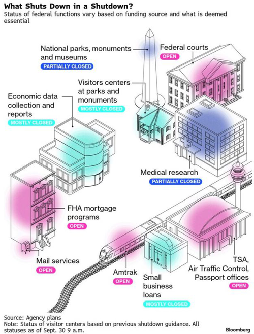 Bloomberg notes that roughly one-third of federal employees will be furloughed during the shutdown, which is lower than in previous shutdowns, when about 40% of workers were sent home. This brings us to the complete agency-by-agency furlough impact list: