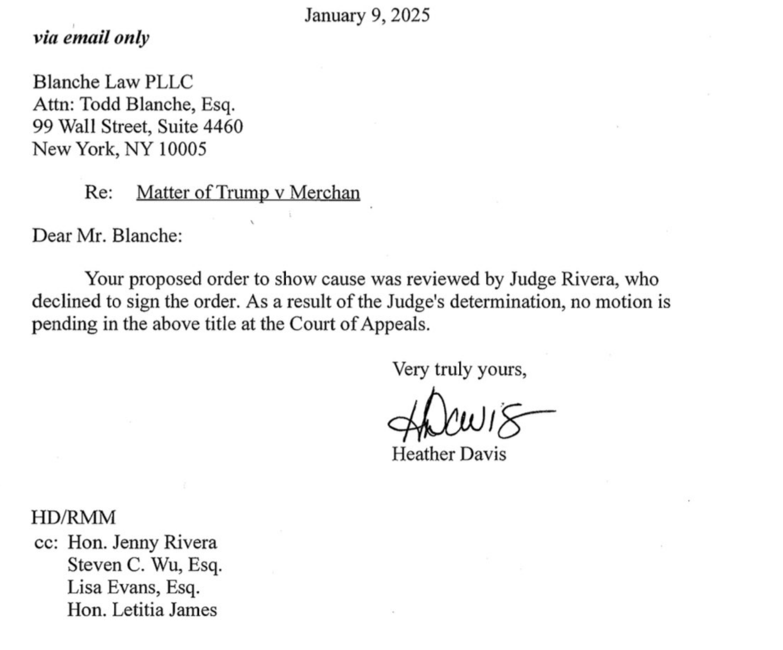 One judge of the New York Court of Appeals issued a brief order declining to grant a hearing to Trump’s legal team. No explanation was given to Trump’s attorneys.