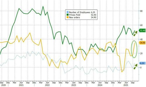 Amid the desert of macro data due to the shutdown, traders are reaching for anything to get a sense of the US economy and this morning's Empire State Fed Manufacturing Survey offers hope for the future.