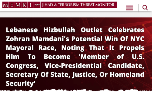 Hezbollah's main mouthpiece, Al-Khandiq media, celebrated Mamdani's rise, calling the NYC mayor's office the "2nd most powerful in America," a stepping stone to Congress, Cabinet…even VP.