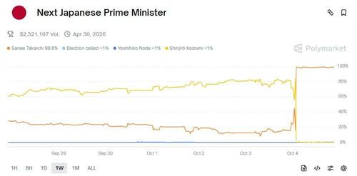 As Bloomberg notes, Takaichi is expected to become premier later this month in a parliamentary vote. In becoming the LDP’s chief, Takaichi has already smashed a glass ceiling in a nation that has only seen male ruling party leaders.