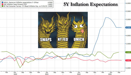Amid a barren landscape of macro data due to the shutdown, the fact that many are strongly focused on the incredibly noisy and historically dismissed University of Michigan sentiment survey for any signals on inflation expectations or job hopes is in itself noteworthy.
